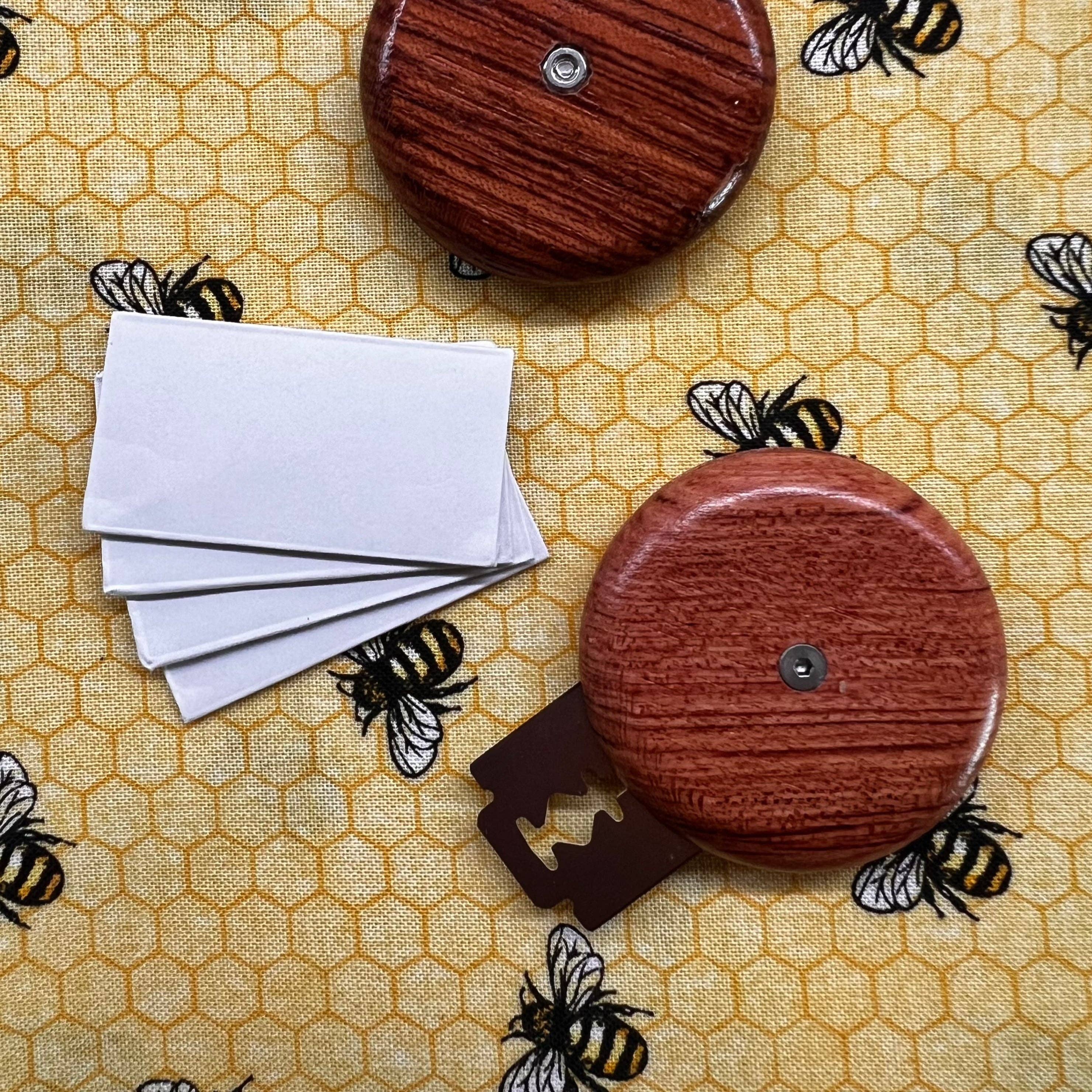This compact scoring knife is excellent for detailed and decorative cuts in breads and doughs. The embedded screw design ensures easy adjustment of blade tension and secured angle. The design allows you to score primary deep cuts as well as meticulous, exact scores with no worries about messing up. The bread razor can retract and be stored safely, completely inside the lame. (comes with 5 blades) Made from Beechwood, this bread lame is beautiful and functional. Made of repurposed solid wood, and crafted just for you!