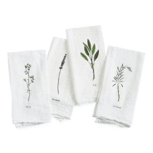 Season your tabletop with our freshly picked set of Flour Sack Napkins. Designs feature Lavender, Sage, Thyme and Rosemary, each individually screen printed on 100% flour sack cotton napkins.
