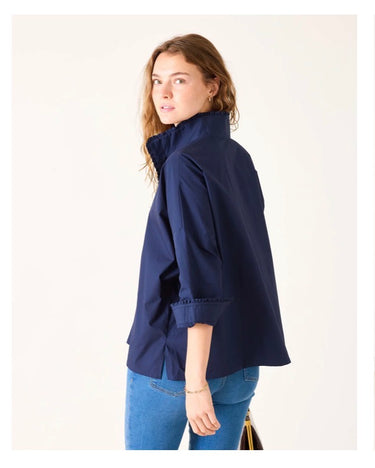 A popped collar makes any outfit sophisticated and chic, even if all you did was throw on a pair of your favorite jeans. The Emerson Top is known for its pop-up collar met with Henley Placket hidden buttons.