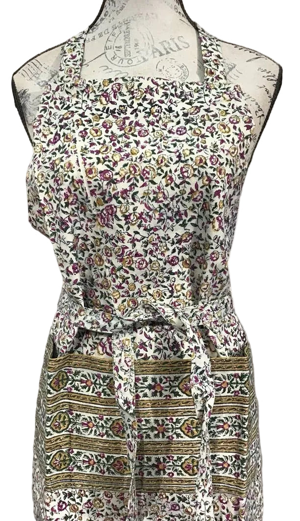 Crafted from durable cotton canvas with hand block printing, this versatile apron features an adjustable button-closure neck strap for a customized fit. One-size design suits most wearers, and machine washing keeps it easy to maintain.