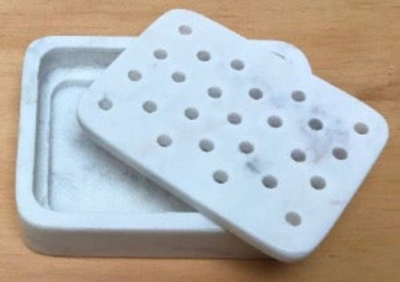 Crafted with marble, this timeless and modern soap dish features a white hue with grey veining.