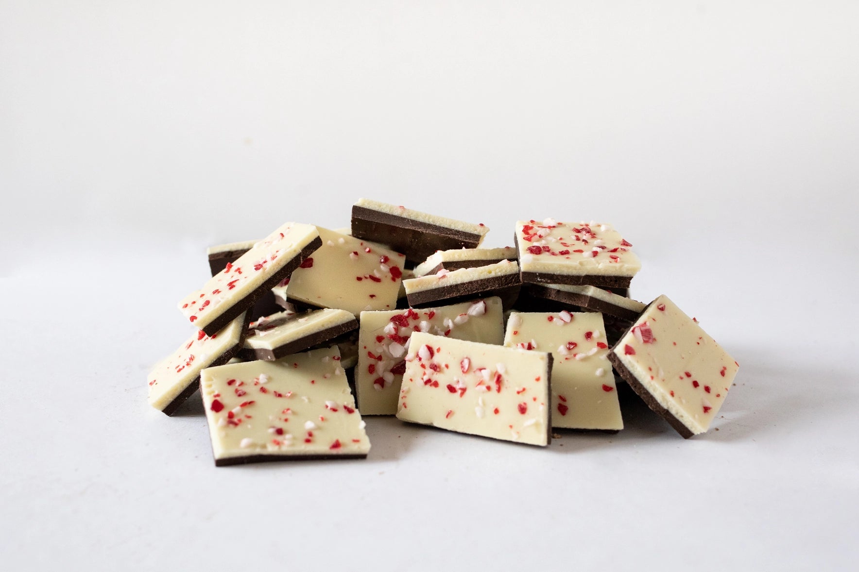 Back for the Season! This 8 oz. pouch of Peppermint Bark contains bite-size pieces of The Toffee House’s peppermint bark. Starting with a layer of dark chocolate, then covering it with a mixture of white chocolate and natural peppermint oil, it is then topped with crushed peppermint candies! It's a seasonal favorite. Get it while it's here.