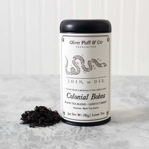Bohea is a distinctive black tea blend with a light smoky flavor. So popular in colonial times that bohea became the common word for tea. Hand packaged in Charleston, South Carolina by Oliver Pluff and Co.