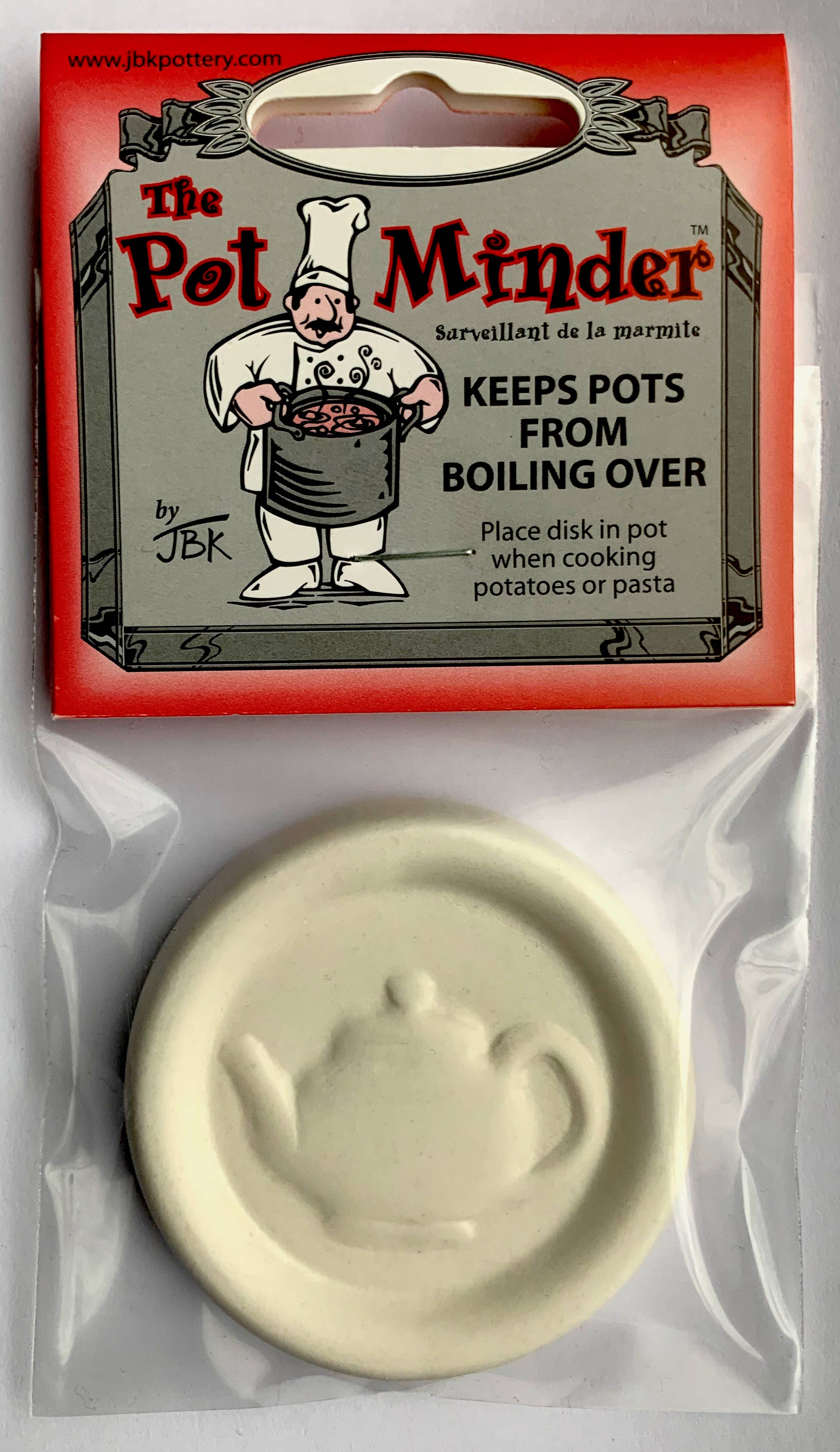 Simply place the Pot Minder in the bottom of the pot when cooking or warming pasta, soups, vegetables, or milk or boiling eggs. When the water begins to boil, the Pot Minder will begin to chatter in the bottom of the pot. If you prefer, when the Pot Minder begins to chatter, you can remove it and turn the heat down. Approx 2.3” in diameter and .4” thick