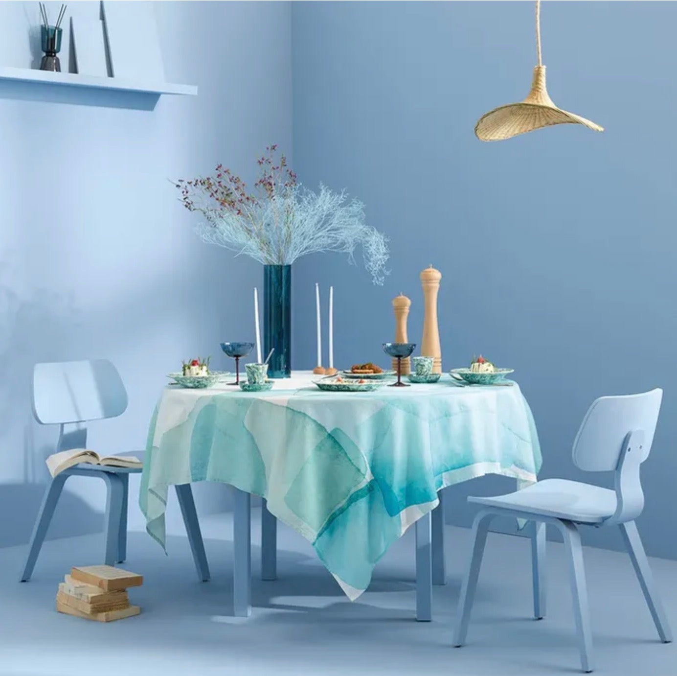 Aqua Mineral Tablerunner brings French elegance to your table with watercolor-inspired blue and green artwork. Crafted from a soft cotton-linen blend by Garnier Thiebaut artisans, this versatile runner drapes gracefully and complements both everyday meals and special occasions. The fluid, layered design adds a serene, contemporary aesthetic to any dining space.
