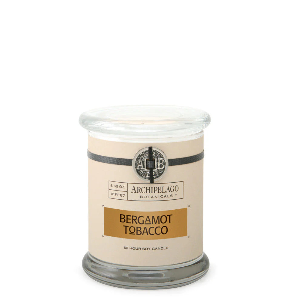 Welcome your guests with the crisp blend of Italian Bergamot and Tobacco Flower. A perennial customer favorite and top-seller, the hand-poured jars are made with soy wax and contain the safe, lead-free wicks and the complex and intoxicating essential oil fragrance blend. Finished with the signature coin and strap!