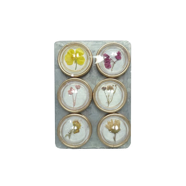 Ideal for gifts or stylish decor, these botanical magnets come in a set of six and feature 1 inch round resin convex magnets on a metal card with a stunning gold finish. The perfect addition to any space.