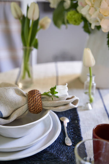Transform your dining experience with the Eclipse napkin ring set. Crafted from natural rattan, these textured napkin rings bring a sophisticated touch to any tablescape. Available in natural or whitewash finishes, they effortlessly harmonize with a variety of napkins, making them the perfect finishing touch for your table. Whether you're hosting a casual family dinner or a more formal gathering, the Eclipse napkin rings add timeless elegance and versatility to any setting. Complete your dining moments with this understated yet stylish accent.