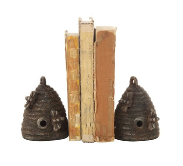 Cast iron beehive bookends offer an ideal solution for the cookbook connoisseur desiring easy access to beloved volumes. These striking pieces feature intricate bees hovering around beehives.