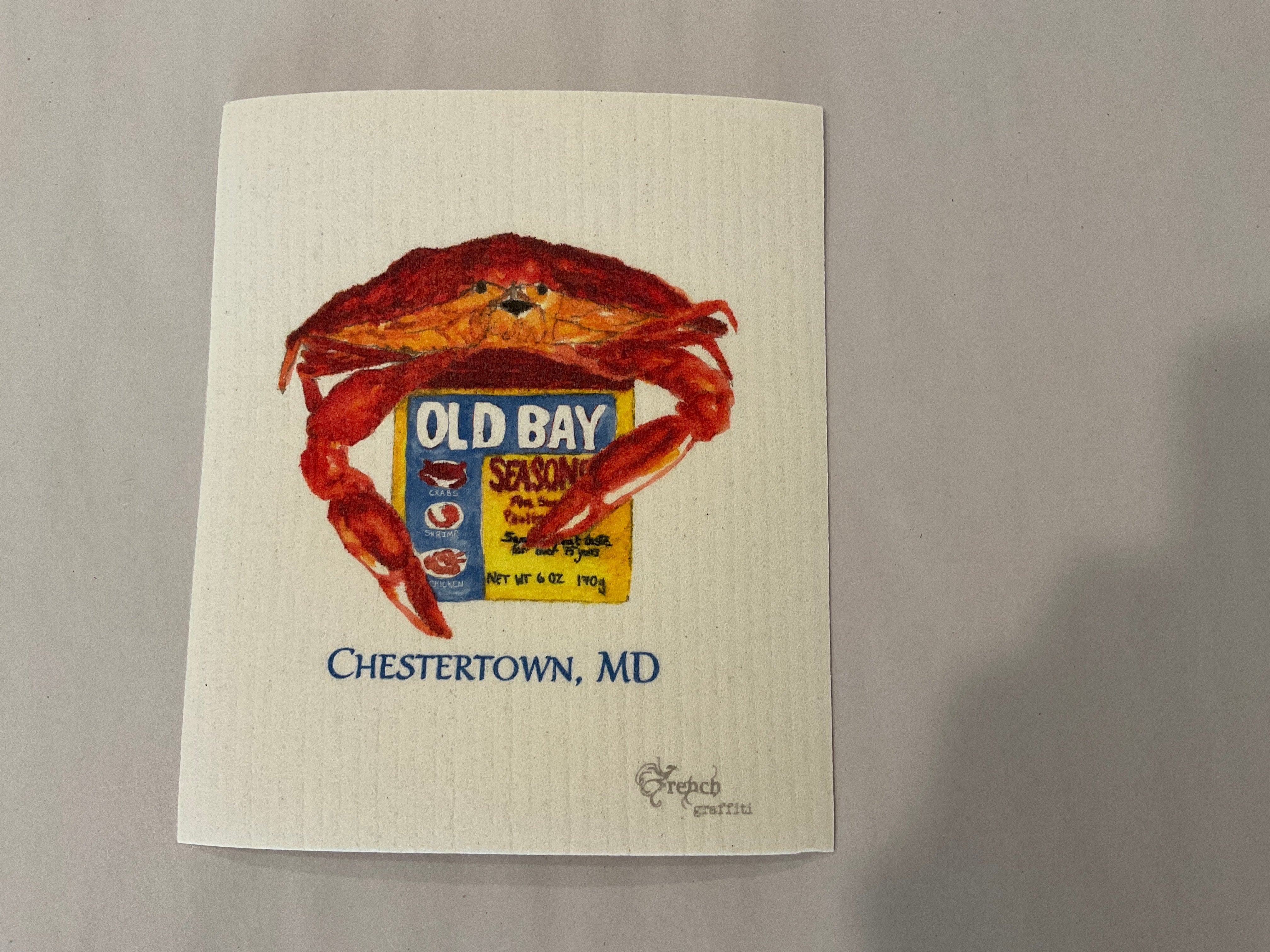 Clean dishes or wipe down counter tops featuring every Marylander's favorite steamed meal with the fixings!