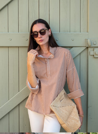 Emerson Pop Up Collar Top | Cafe Stripe