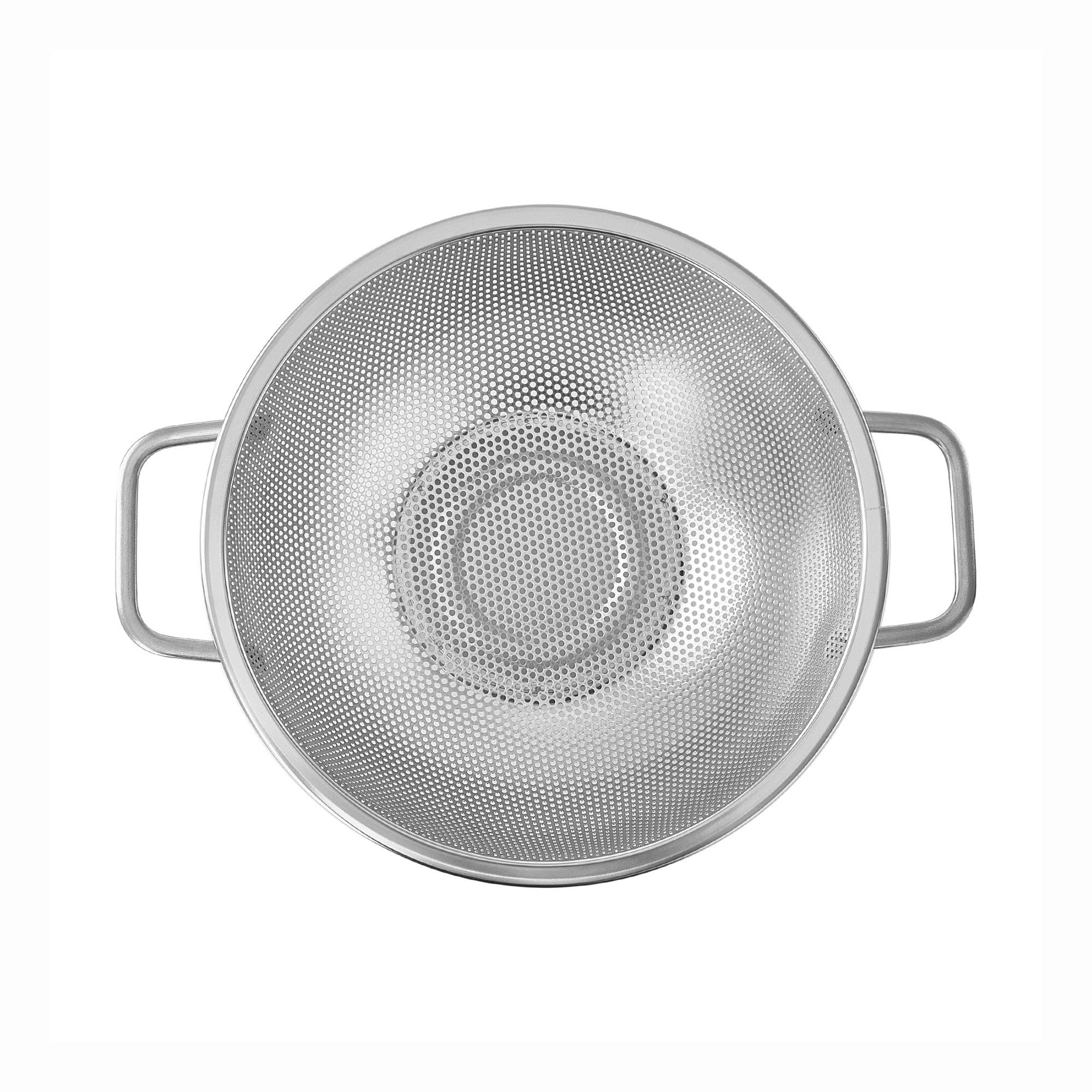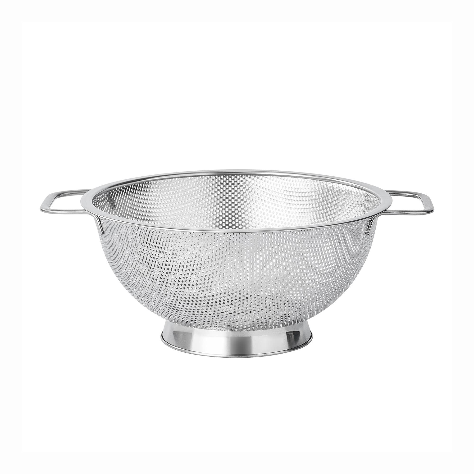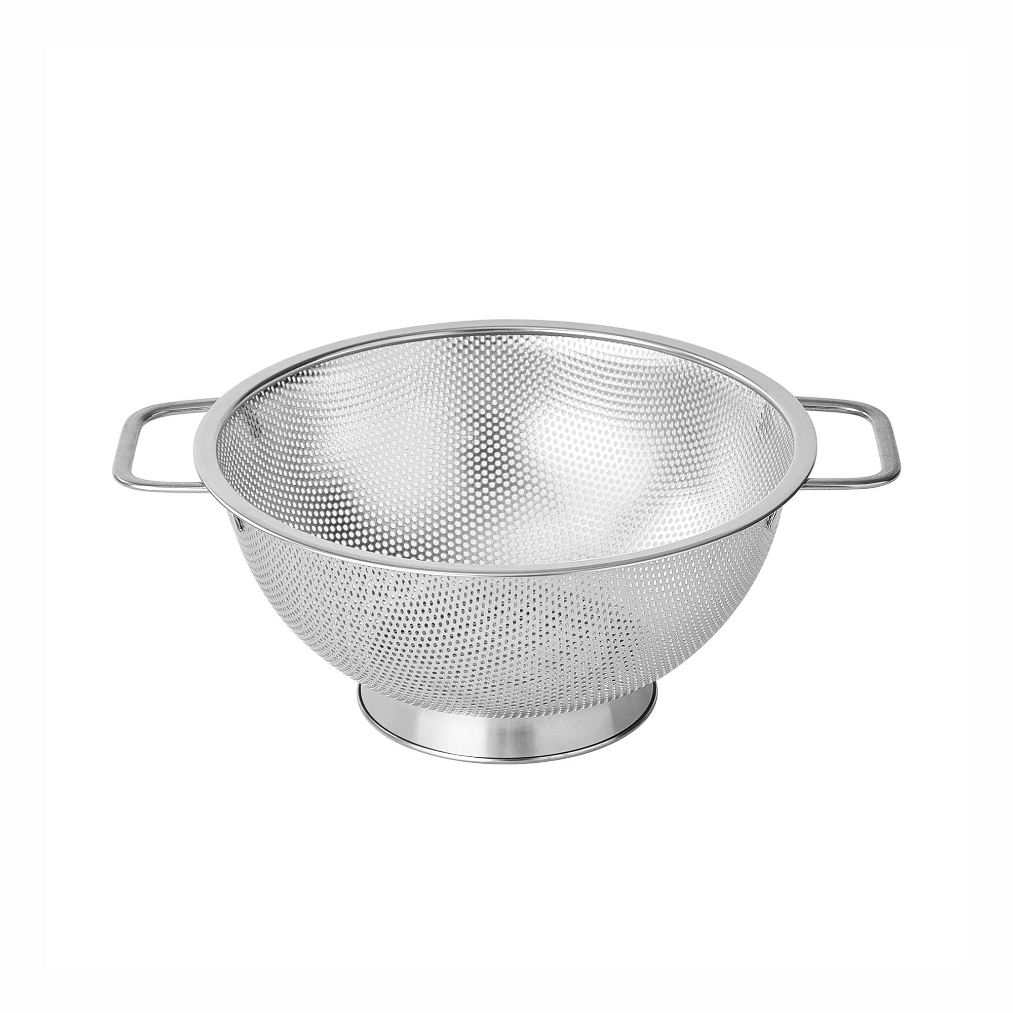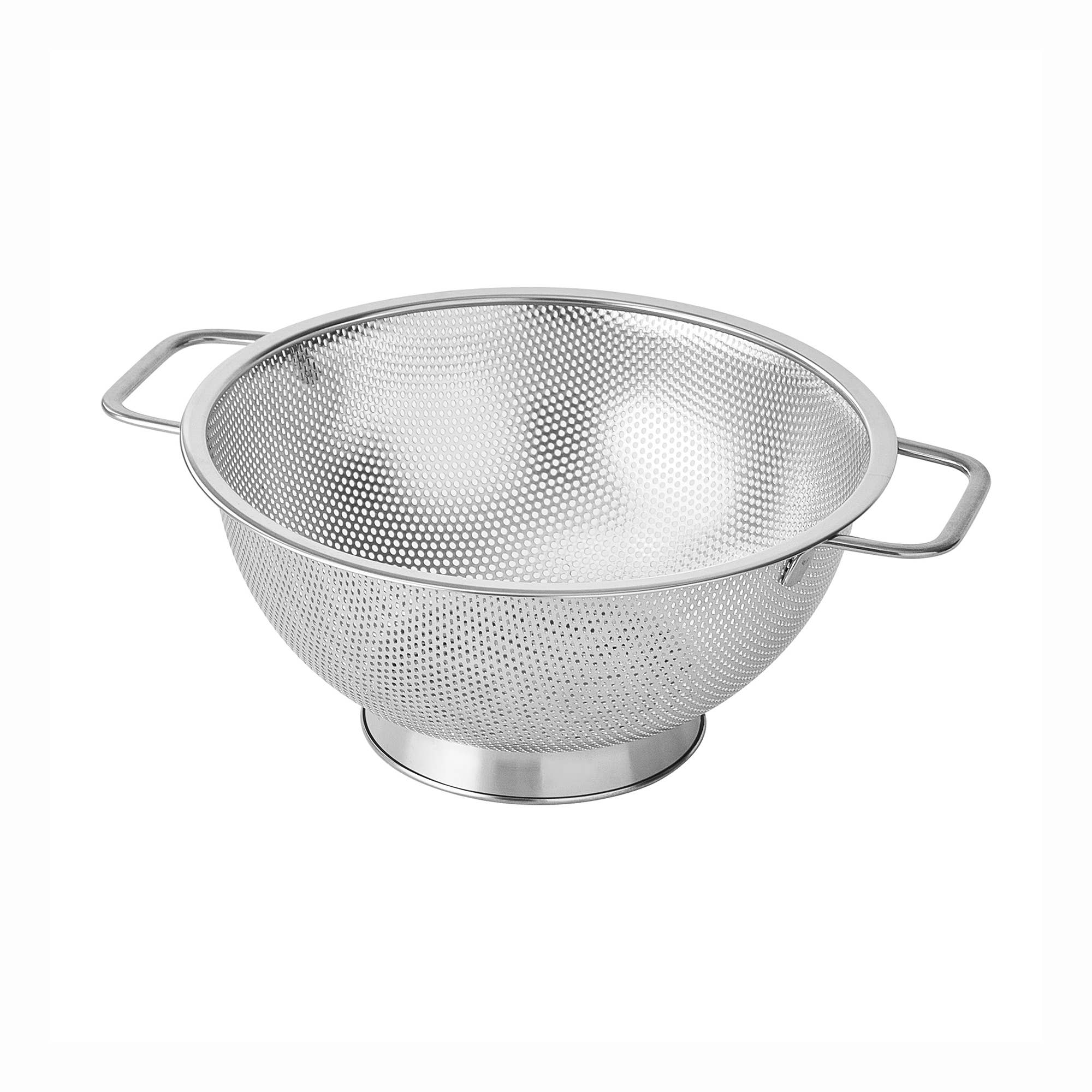 Efficiently strain pasta, fruits, vegetables, and more with this durable 3 quart stainless steel colander by Fox Run. Includes handles for easy transportation and is dishwasher safe.