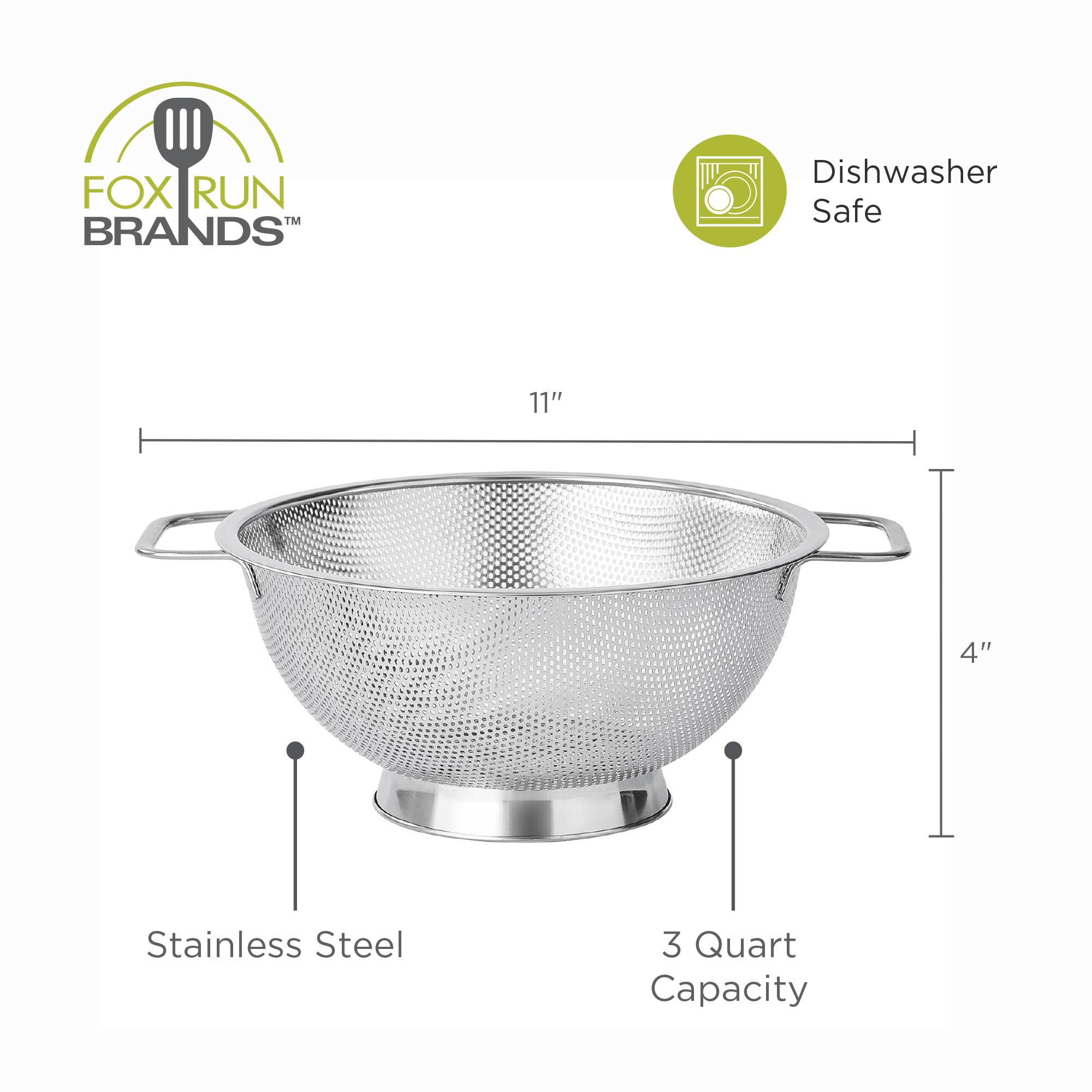 Fox Run Brands - Fox Run Large Stainless Steel Colander, 3 Quart Strainer