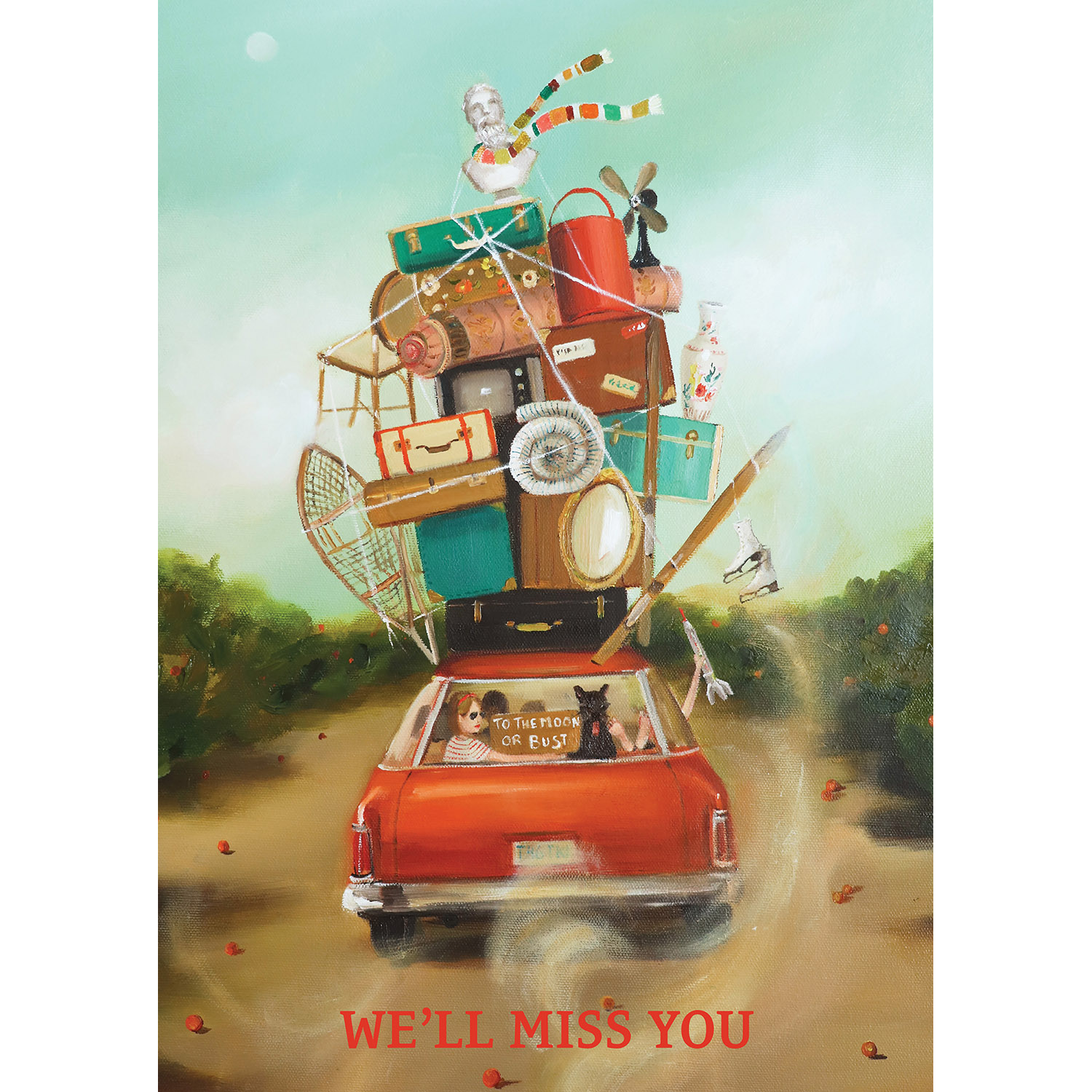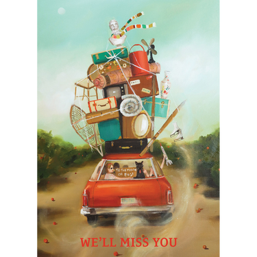 Say farewell in style with this 5" x 7" greeting card by artist Janet Hill. Experience the whimsical worlds of Janet Hill's art in our collection of greeting cards for many occasions.