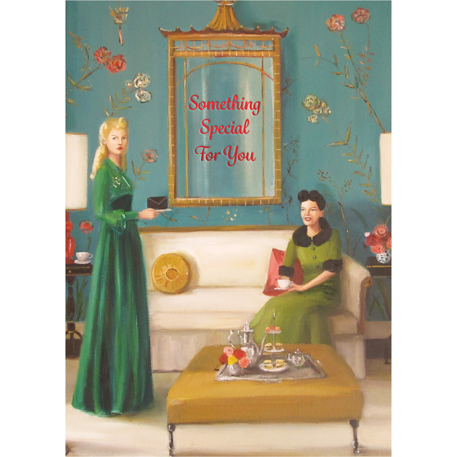 Give a special sentiment with this 5" x 7" greeting card by artist Janet Hill. Experience the whimsical worlds of Janet Hill's art in our collection of greeting cards for many occasions.