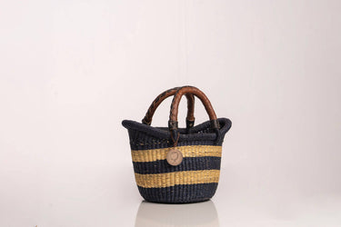 Our Style No. 3 is a variation of Style No. 2 with 3 black lines and natural color combination. Hand Woven straw Sustainably sourced goatskin handles Opening at center below rim for closure Can be easily reshaped with water (instructions included) Fun Fact:
