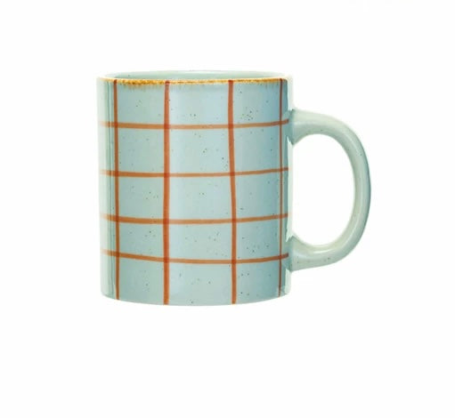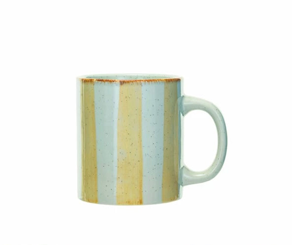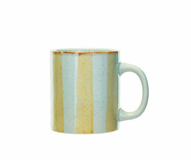 Indulge in a warm drink with these hand-crafted mugs with delicate striped designs. Constructed from strong stoneware material and showcasing a subtle speckled finish.