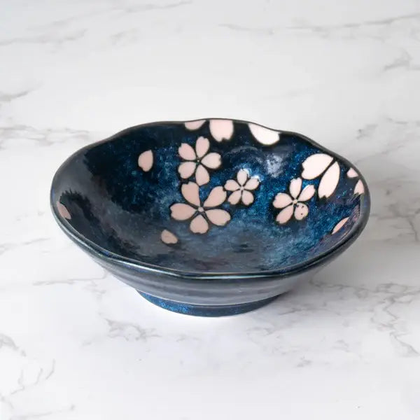 Urban Tokyo - Hasui Sakura Navy 4.5"D x 1.5"H Porcelain Small Sauce Dish