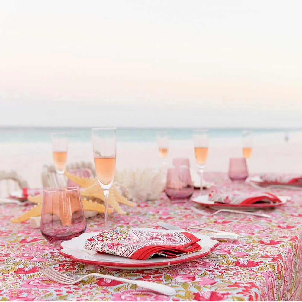 Bring spring beauty to your table with the Wildflower Garden Table Linen Collection from Pomegranate. This charming collection showcases a vibrant feminine floral design in soft pinks, fresh greens, and delicate pale blue accents. Perfect for adding a touch of botanical elegance to your dining space, these linens celebrate the carefree spirit of a blooming garden. Ideal for everyday gatherings or special occasions..