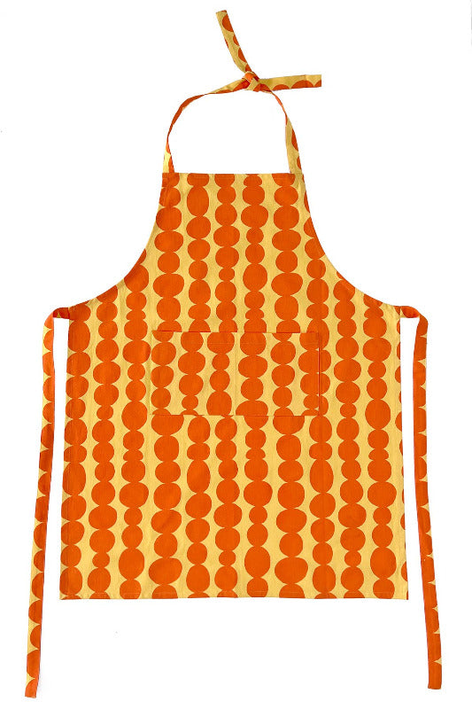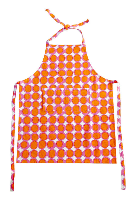 Donna Gorman's vibrant, hand-painted designs combine bold colors and prints for a perfect kitchen apron. Featuring ties at the neck and waist to provide a comfortable fit, and the divided front pocket adds a functional touch. Coordinate with matching pot holders and mitts for a completed look!