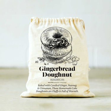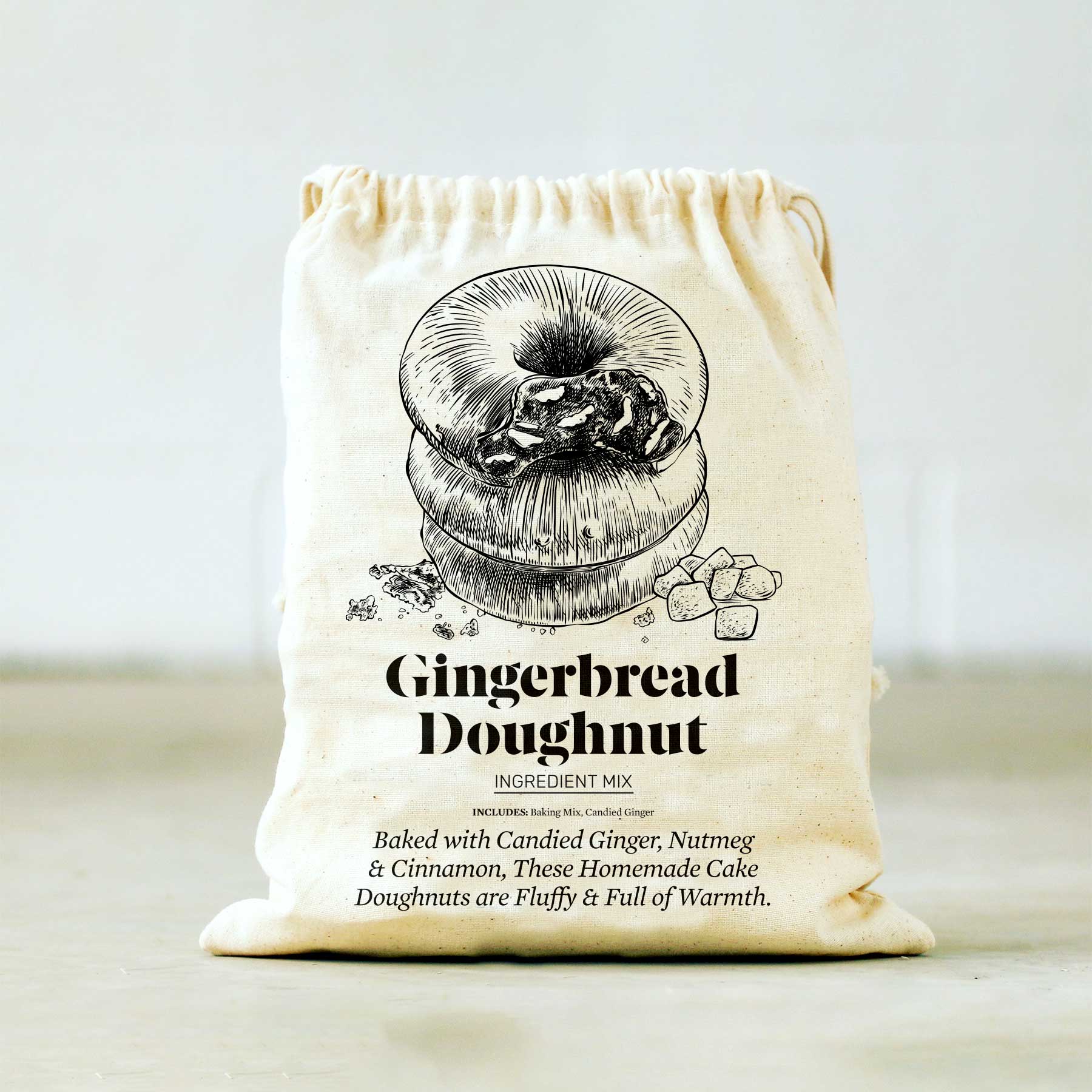 No baking skills required. Perfect for indoor family fun this holiday season. Gingerbread Doughnut Baking Mix Includes: Baking Mix Organic Sugar Topping Candied Ginger