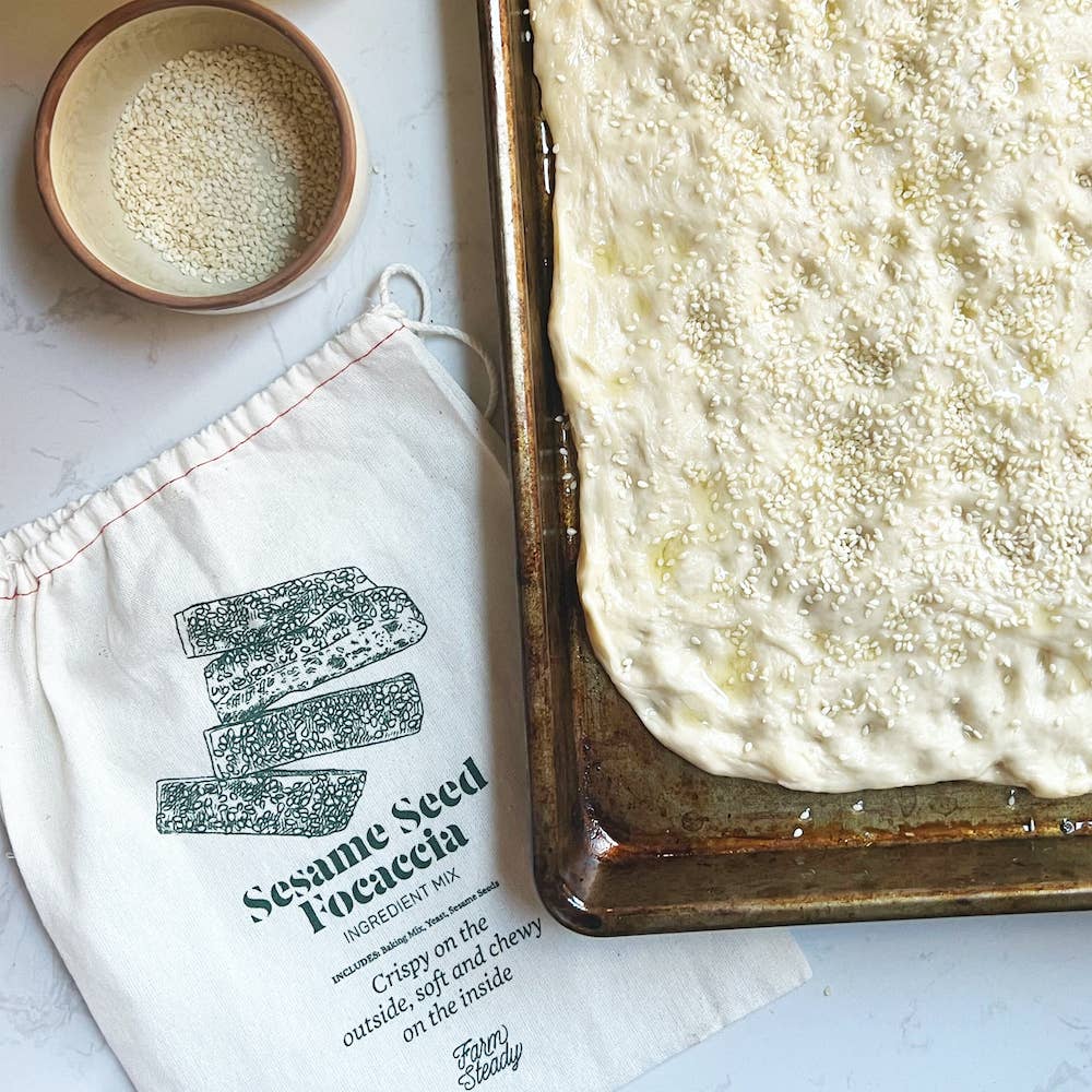 Sesame Sees Focaccia Baking Mix Includes: - Baking Mix - Baking Yeast - Sesame Seeds