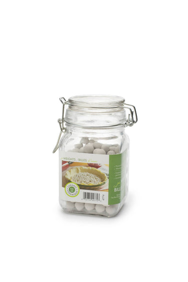 Dreaming of that perfect, crisp pie crust? These small round natural unglazed ceramic stoneware baking weights are a great way to keep all your pastry shells bubble-free and shrink-free. Just cover pierced unbaked pie shell or dough with cooking paper and fill with pie weights before baking to prevent uneven rising. Remove weights after blind baking, hand wash and allow to dry before storing in the included container for future use.