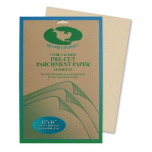 - Beyond Gourmet's Non-Stick Pre-Cut Unbleached Parchment Sheets keep baked goods from sticking without greasing baking pans or the use of oils
