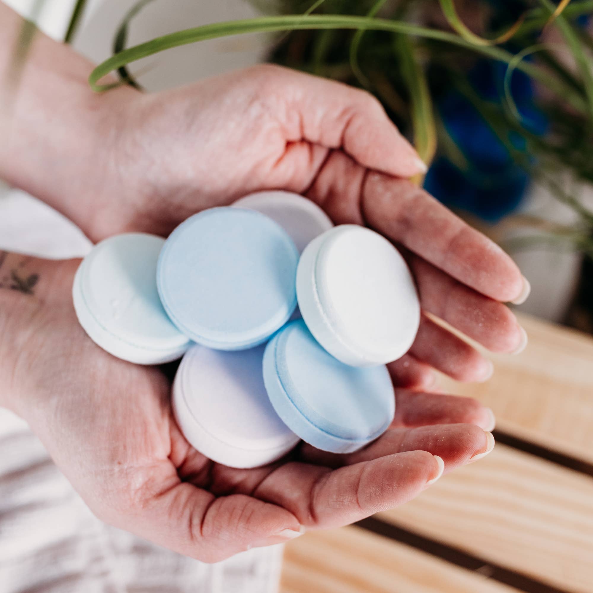 Each box includes six tablets—designed for multiple moments of renewal. Place a Eucalyptus Rain steamer on the shower floor and let the water activate its rejuvenating essential oil blend. As it dissolves, it releases clean, vibrant aromas of eucalyptus, cypress, and spearmint—crafted to balance the body and reset the mind. A simple way to turn your daily rinse into a replenishing ritual.