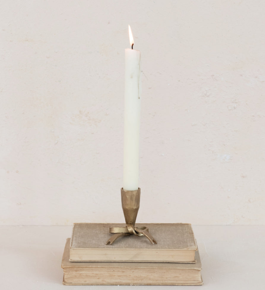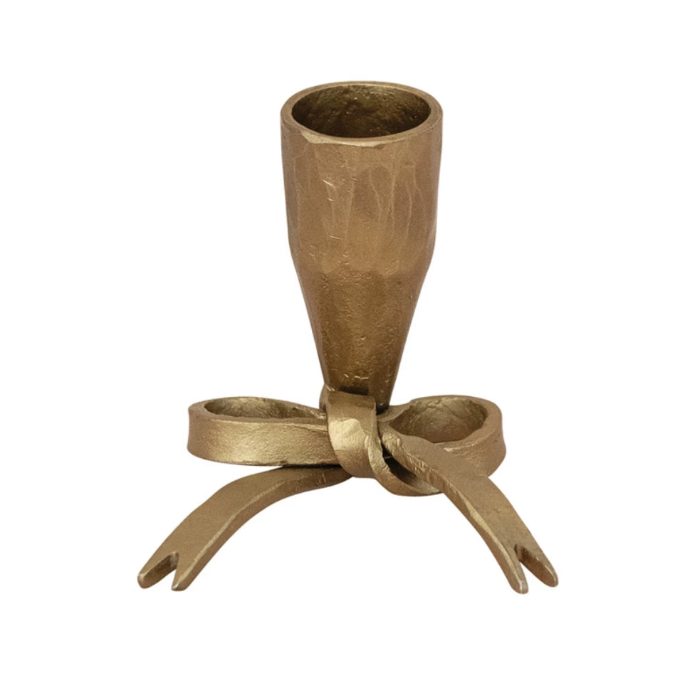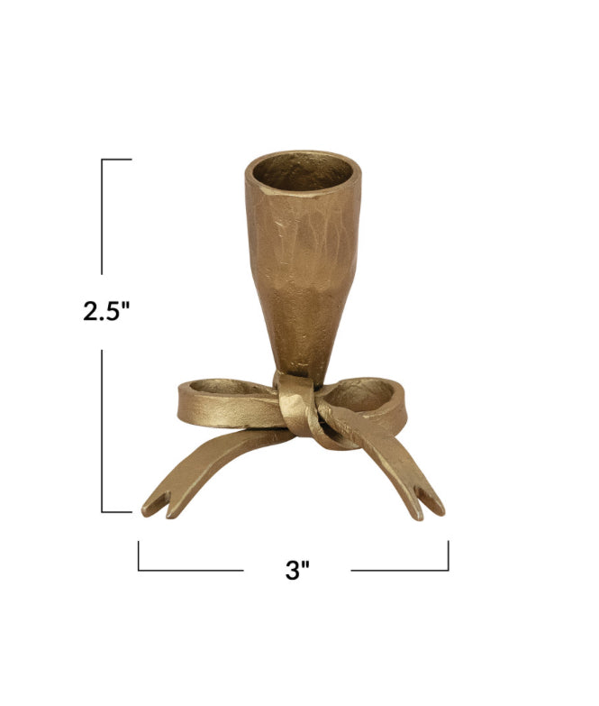Hand-Forged Iron Bow Shaped Taper Holder, Antique Gold Finish