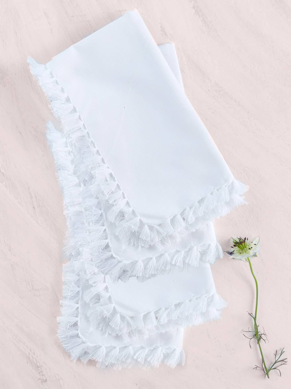 Our expertly crafted cotton comes in a variety of solid colors. Made with 100% cotton, these delicate napkins feature hand-knotted fringe for a touch of elegance. With a vibrant color range, these napkins flawlessly match any tablecloth.