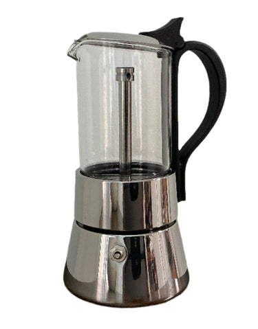 Fino Stainless Steel Glass-Top Espresso Maker 4 Cup