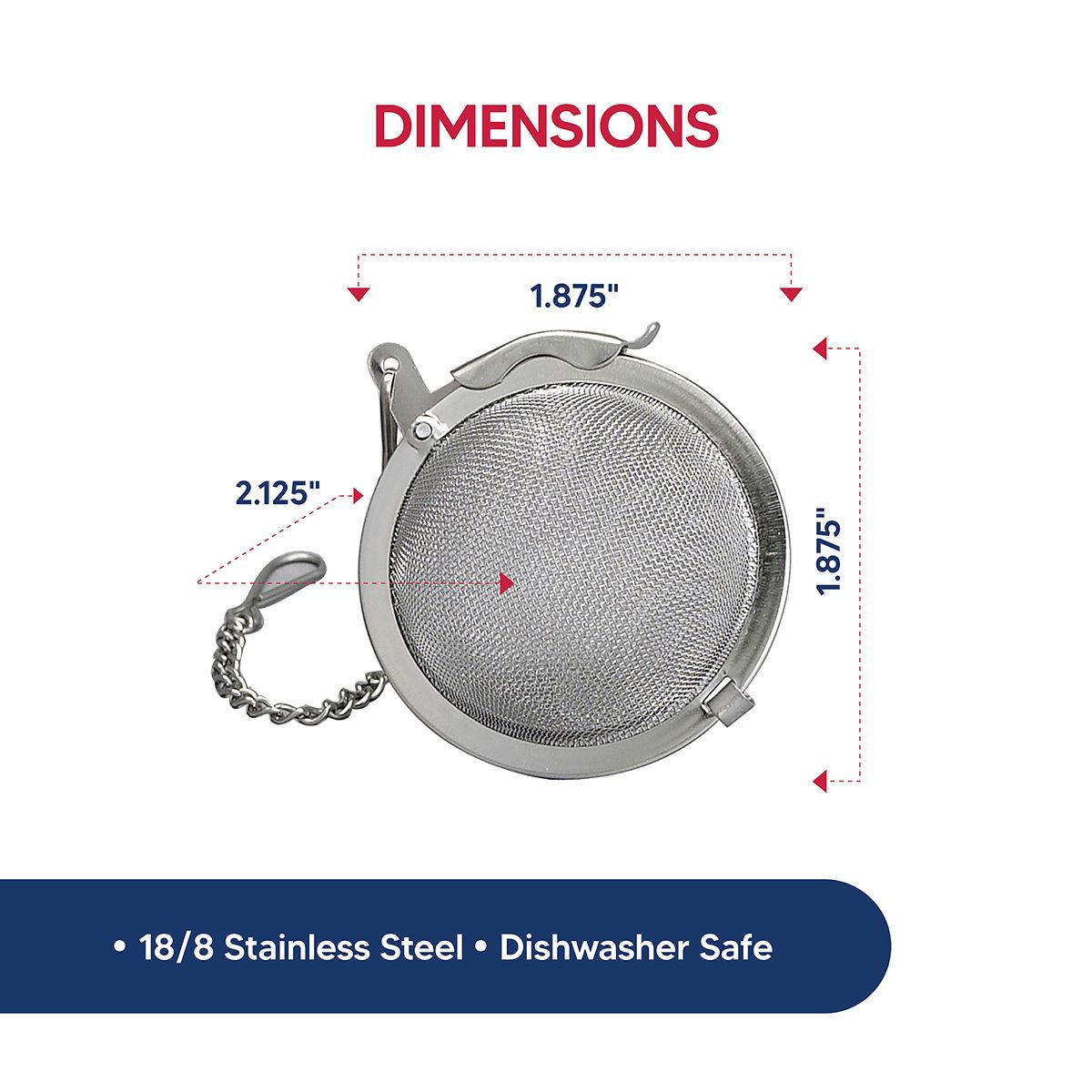 HIC Kitchen's Mesh Ball Tea Infuser brews a more flavorful and distinct cup of loose leaf tea with the same ease as tea bags. Made of 18/8 stainless steel mesh and LFGB approved, it is conveniently compact and measures 2 x 2 x 1.75-inches.
