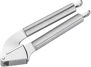 The 18/10 stainless steel construction includes a comfort-grip handle with a hanging loop and measures 8 inches in length with a 2-1/2 inch diameter wheel. For added convenience, this product is also dishwasher safe.