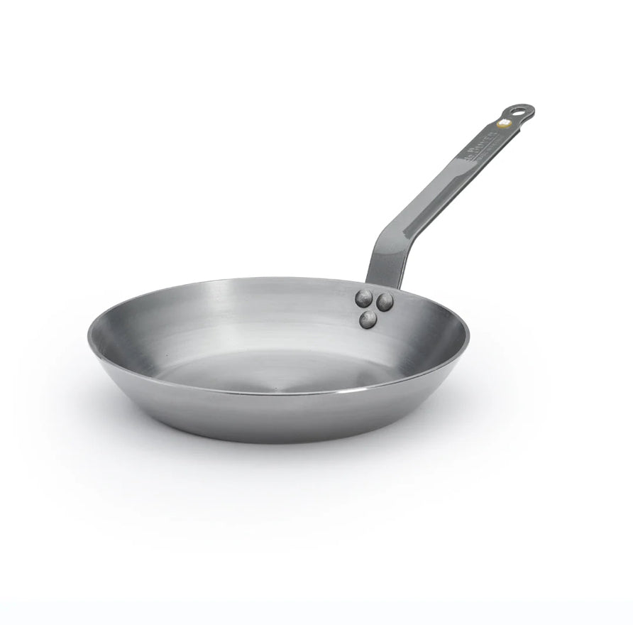 Our Mineral B Classic Carbon Steel Fry Pans excel in frying, grilling, and searing, making them ideal for achieving the Maillard reaction, where the caramelization of natural sugars in food helps to seal in flavor and moisture. Composed of 99% iron and 1% carbon, these pans are robust and durable. With no artificial coatings, they develop a natural nonstick surface as they become seasoned over time; the darker they become, the better the nonstick.