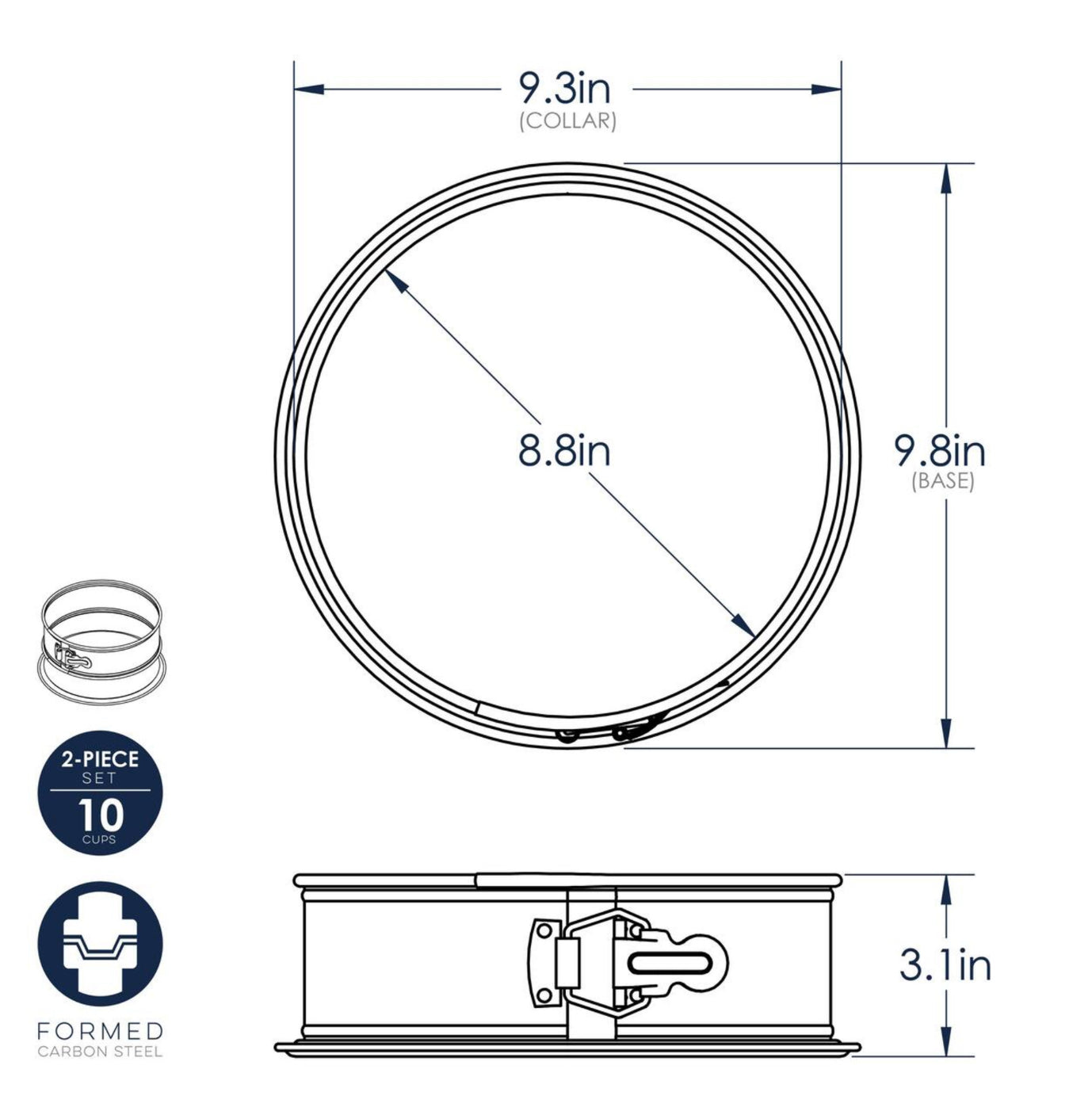 9" springform pan accommodates standard size recipes. Fragile foods are easy to unmold with removable band and sturdy buckle. With its premium PFOA-free nonstick surface, this pan allows you to make cheesecakes and other delicate desserts with absolutely no mess!