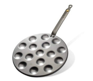 The Mineral B Aebleskiver-Poffertjes Pan is made of carbon steel - 99% iron and 1% carbon, the most natural cooking material praised by Chefs around the world. Lighter than cast iron and more heat conductive than stainless steel, this Aebleskiver-Poffertjes pan becomes naturally non-stick after seasoning, without any chemicals or synthetic coating, and gets better the more you use it. Use it to make Traditional Dutch Aebleskiver and Poffertjes, among other things!