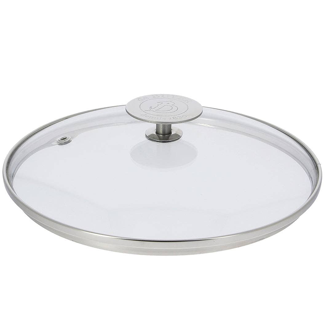 DESCRIPTION This stainless steel-rimmed glass lid fits on round frying pans and sautés pans