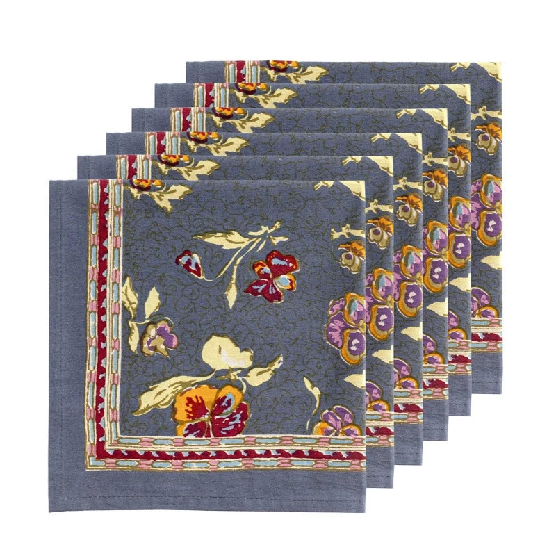 Floral patterns intermix with abstract designs in the Pansy collection, providing a classic yet modern backdrop to any table setting. With a vibrant array of colors and intriguingly complex patterns, this French linen has been carefully hand-printed by skilled artisans using a time-honored technique, resulting in a singular piece of craftsmanship.