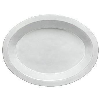 Ceramic oval platter, featuring a classic white and grey glossy glaze by Casafina. Stackable, Stain resistant, Chip resistant, Metal marking resistant. Oven safe, Microwave safe, Dishwasher safe, Freezer safe. Save and preserve the environment from your table with Festa.