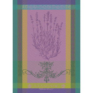Enjoy visions of lavender in the Lavande Mauve kitchen towel, woven in purple and green hues. This jacquard towel adds a soft, floral touch to your kitchen decor.