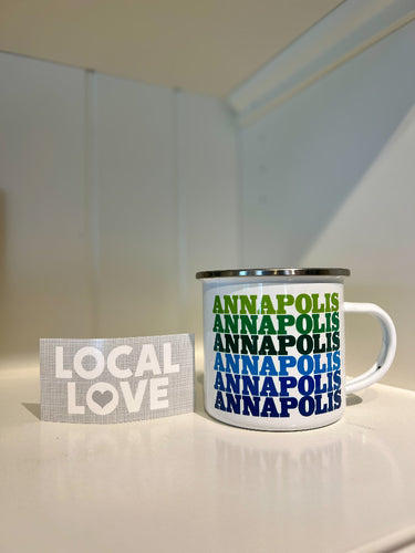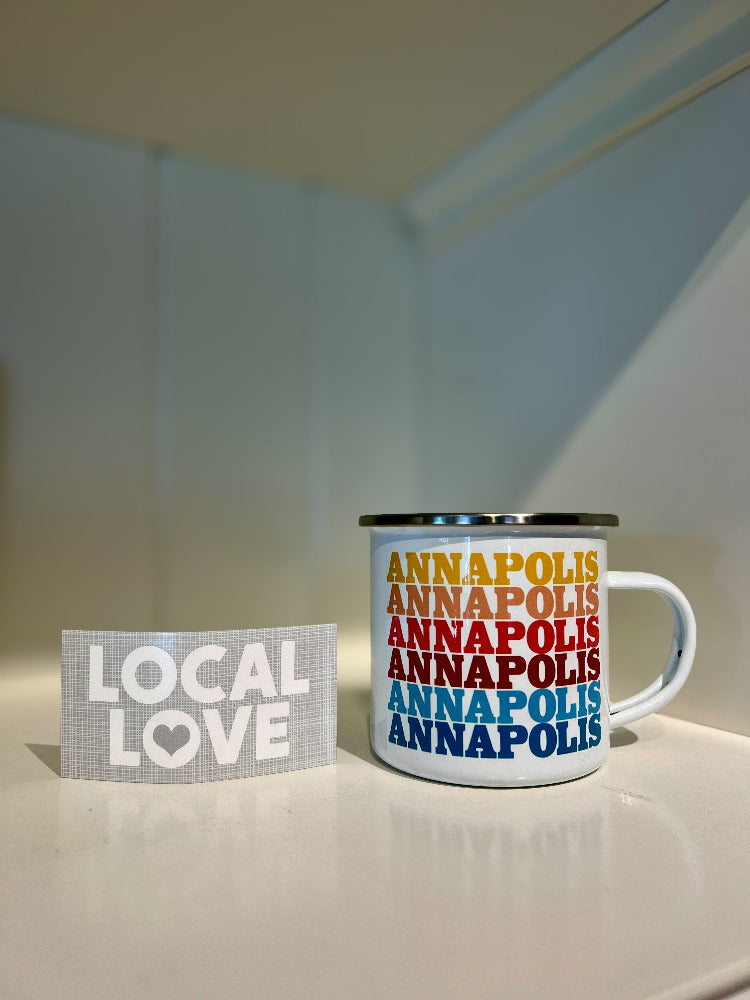 Elevate your morning routine with this Annapolis Camp Mug, showcasing your love for the charming town of Annapolis, Maryland. Whether sipping on coffee or reminiscing about your travels, this Enamelware mug is a must-have. Also makes a perfect gift!