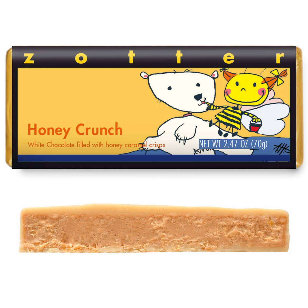 A favorite chocolate for kids. Tasty honey petals crackle in a chocolate-almond cream. Coated with White Chocolate.
