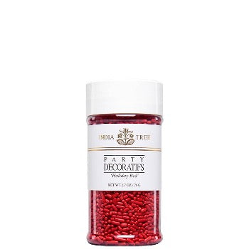 India tree holiday red sprinkles are bright red candy rods just right for Christmas baking. Decorate cookies, cakes and baked goods during the holidays or at any time. Add a festive touch to cakes, cookies, pastries, and ice cream, using India tree party decoratifs, available in holiday colors and seasonal mixes.