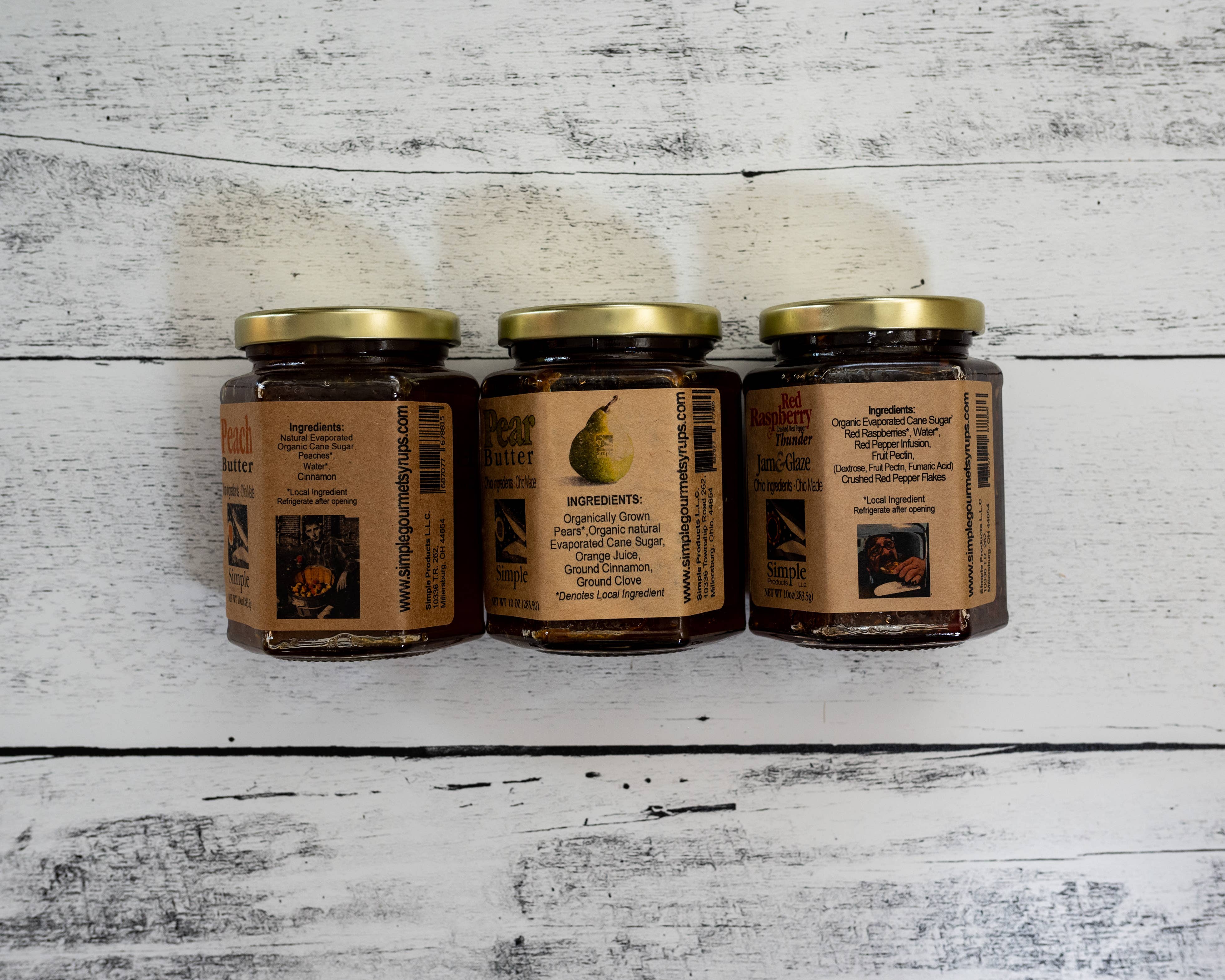 This delicious jam is made by Simple Products in Millersburg, Ohio from locally grown raspberries. It has the perfect level of sweetness to let the fruit be the main focus. The Red Raspberry Thunder Jam has a kick of spice and makes a great appetizer over cream cheese.