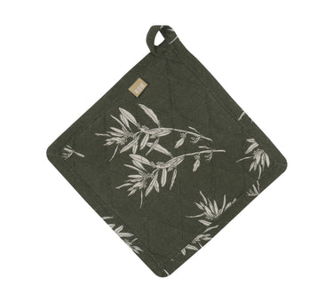 Crafted with recycled cotton and other fibers, these potholders boast a beautiful olive branch pattern that will add a touch of charm to your kitchen. The quilted design provides superior heat protection for hands and counter and tabletop. The delightful olive branch with reversible stripe pattern adds a pop of personality to your kitchen decor