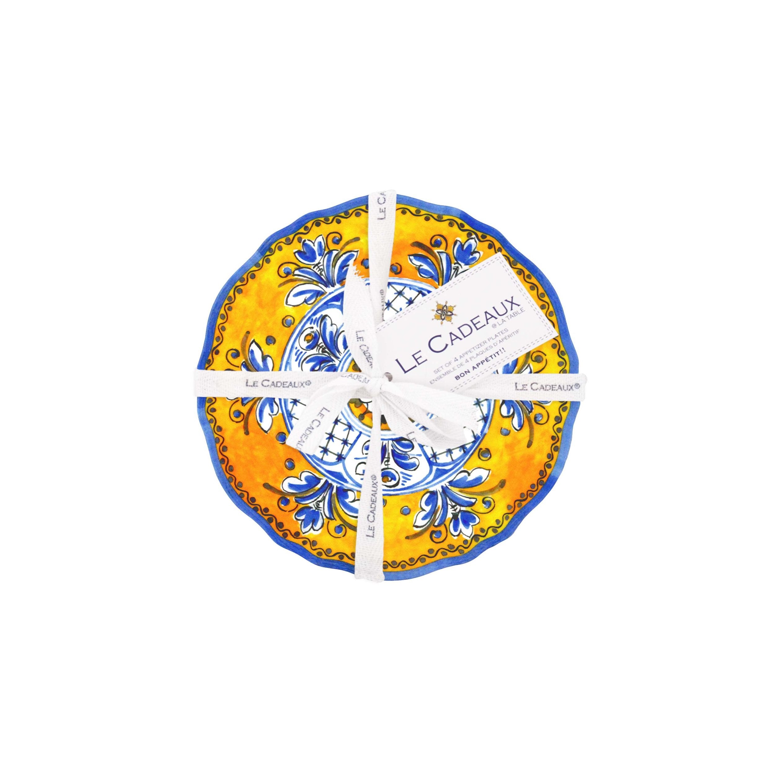 Perfect for entertaining and small bites our Benidorm set of 4 appetizer plates will be the life of the party! Already ribbon tied and tagged for effortless gift giving.