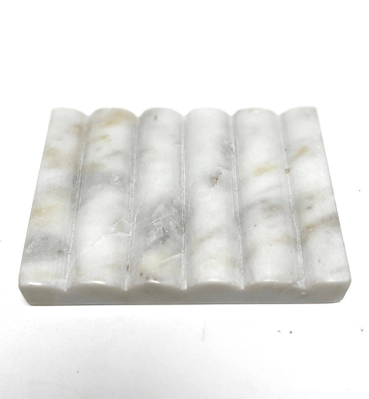 Hand crafted soap dish made with luxurious stone marble that features specialized grooves to promote efficient drying of your soap.