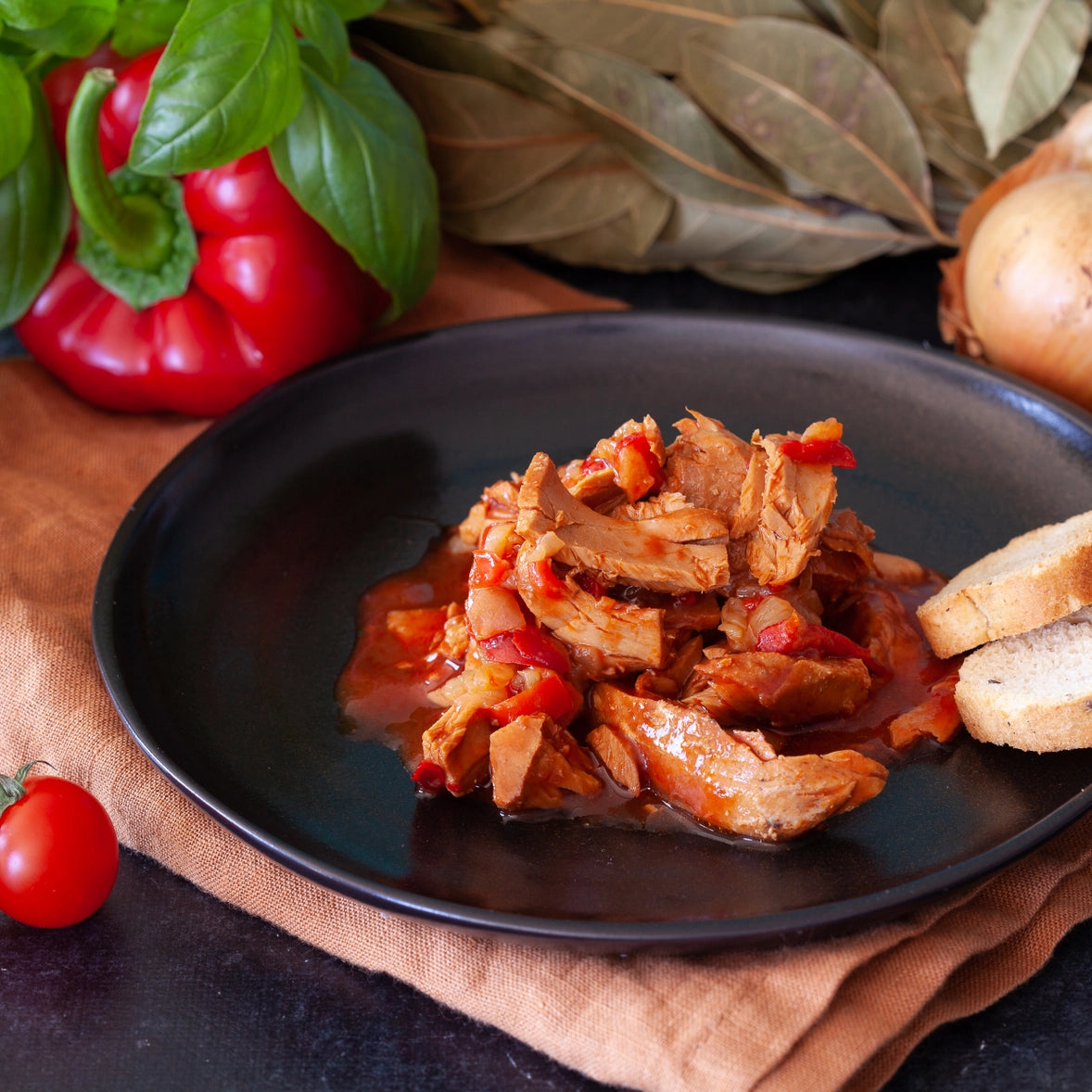 List of ingredients: Wild tuna cooked in broth (Broth: water, carrots*, bay leaf*, clove*) 65%, water, tomato concentrate*, peppers*, onions*, sunflower oil*, vinegar*, salt, sugar*, thickener: xanthan gum, spices*.