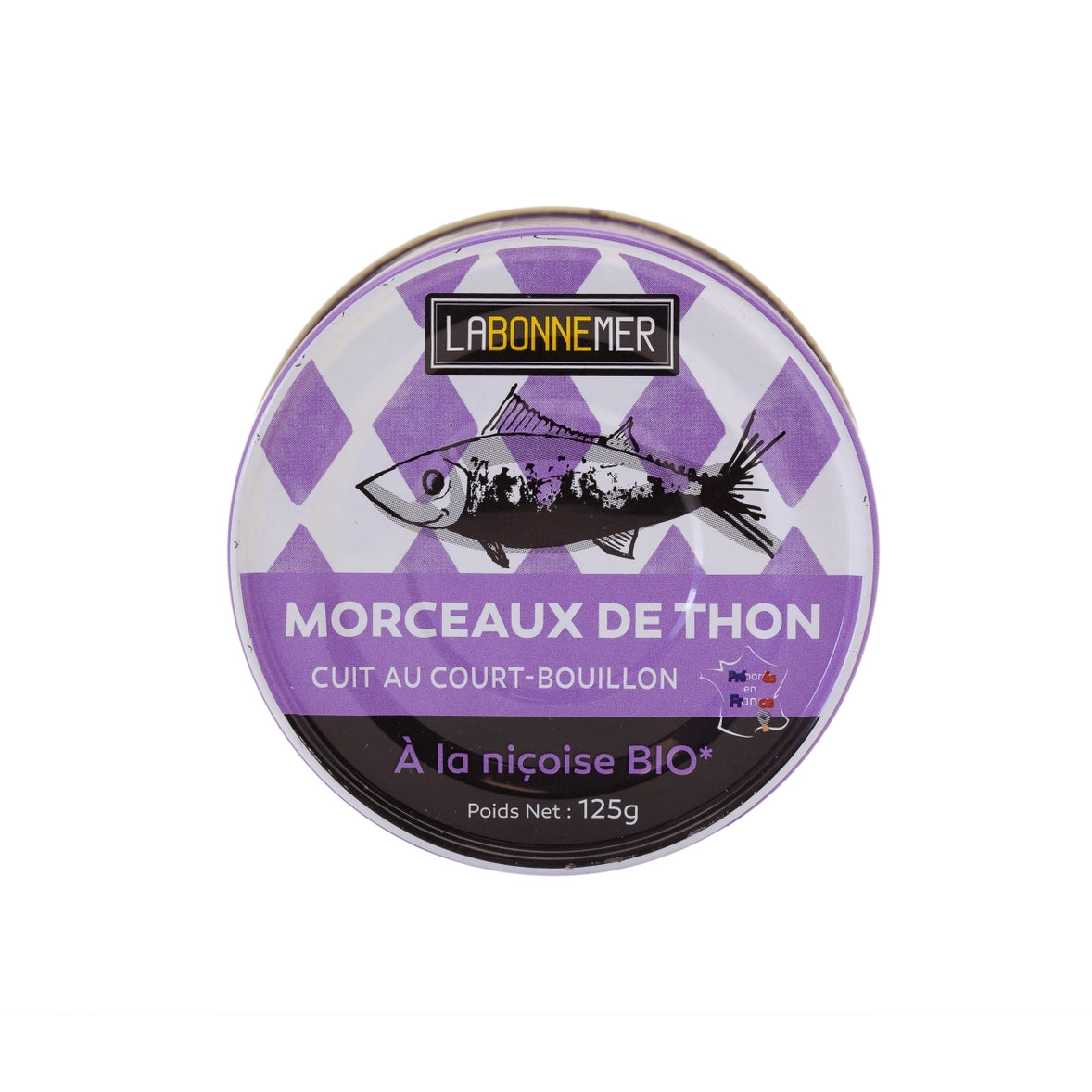 Tuna cooked in broth to make it more tender and accompanied by extra virgin olive oil from Organic Farming.